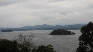 我們乘坐“花都號”游艇前往此次游行的第一站——龍山島,有“桐橋鐵井小金山,石峽書院活龍山”之譽。從海瑞祠拾級而上,海瑞祠是為緬懷清官海瑞在淳安的勤政業績而建的。一路鳥語花香,林木蔥翠,約行五百級石階小徑可直達宋古鐘樓。樓內置一宋代鐵鐘,游人可乘興撞鐘覓趣,亦可眺望湖光山色,隔水遙望縣城千島湖鎮雄姿,領略一番世間少有的人間美景,讓人賞心悅目,流連忘返。