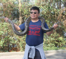 帶著依依不舍的心,我們來到最后一站——漁樂島,首先映入眼簾的是條大蟒蛇,同事們爭先與其合影留戀。